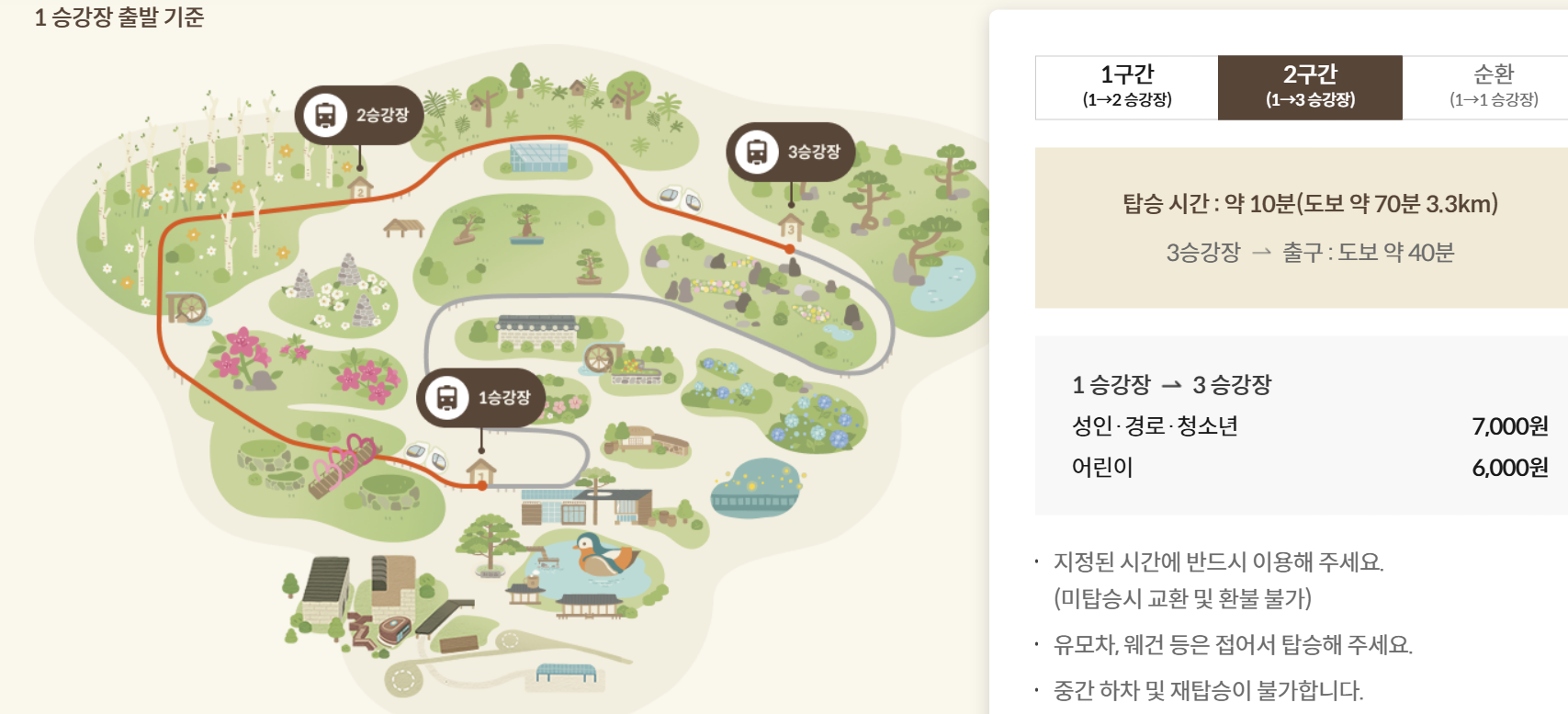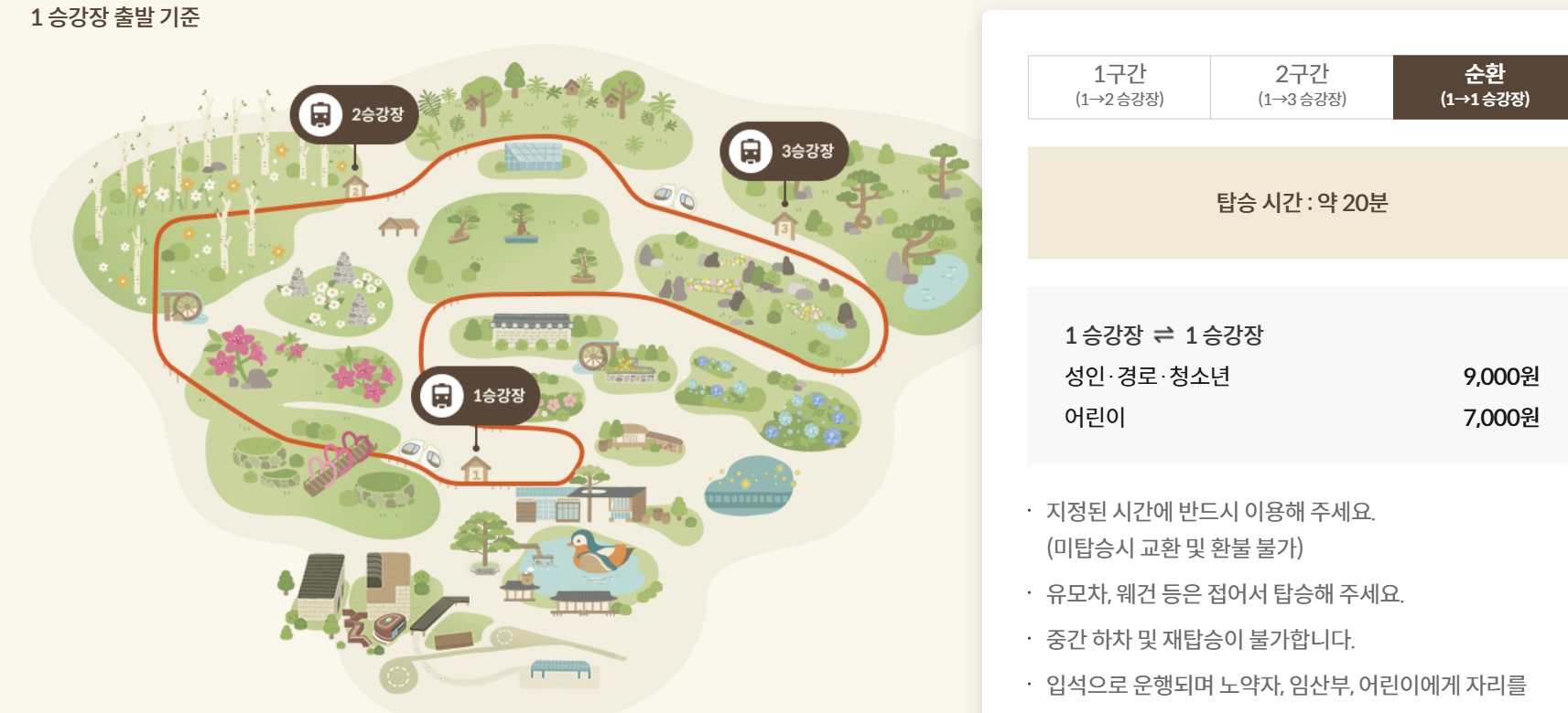 - 순환권 이용 시 중간 하차 후 재탑승은 불가합니다