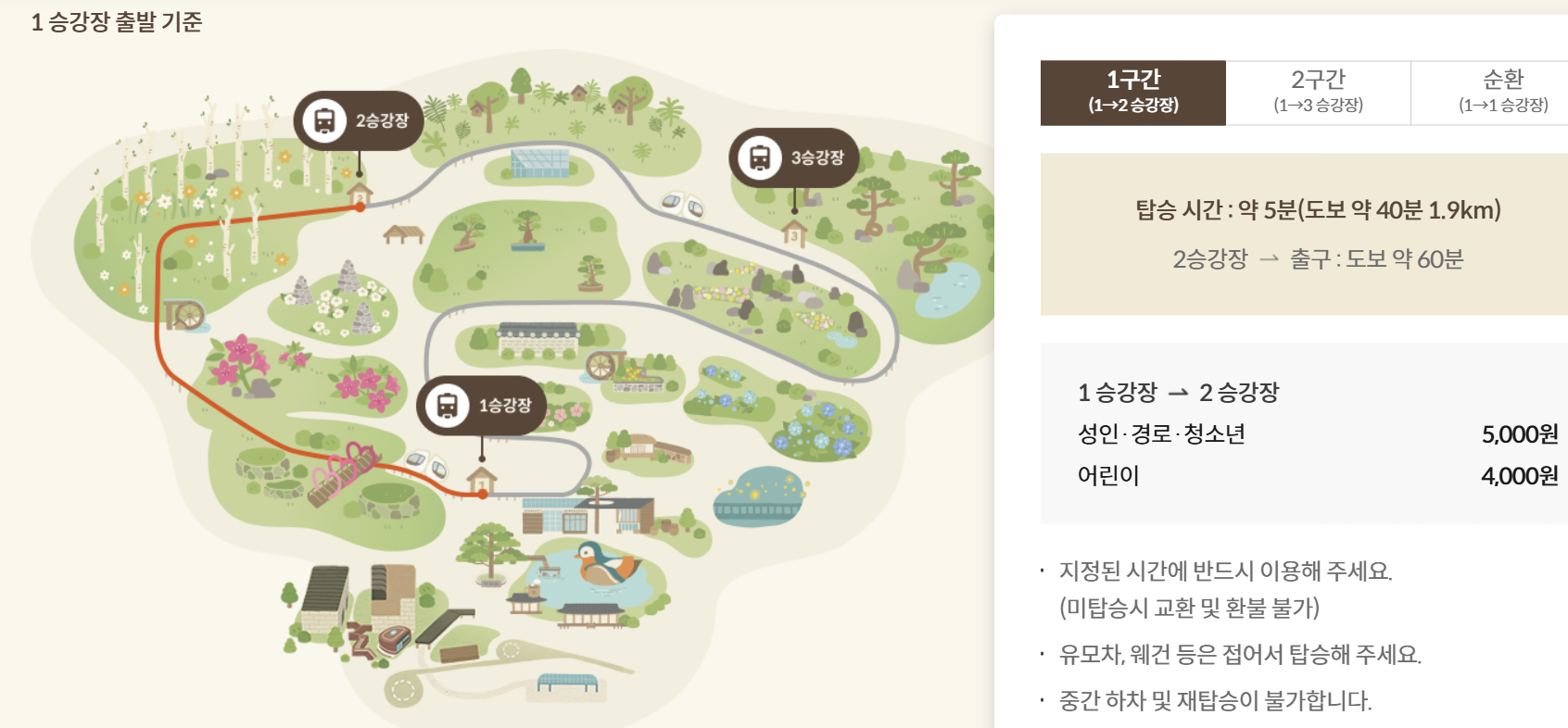 - 봄·가을 성수기에는 전 구간 조기 매진될 수 있으니 빠른 예매를 추천드립니다