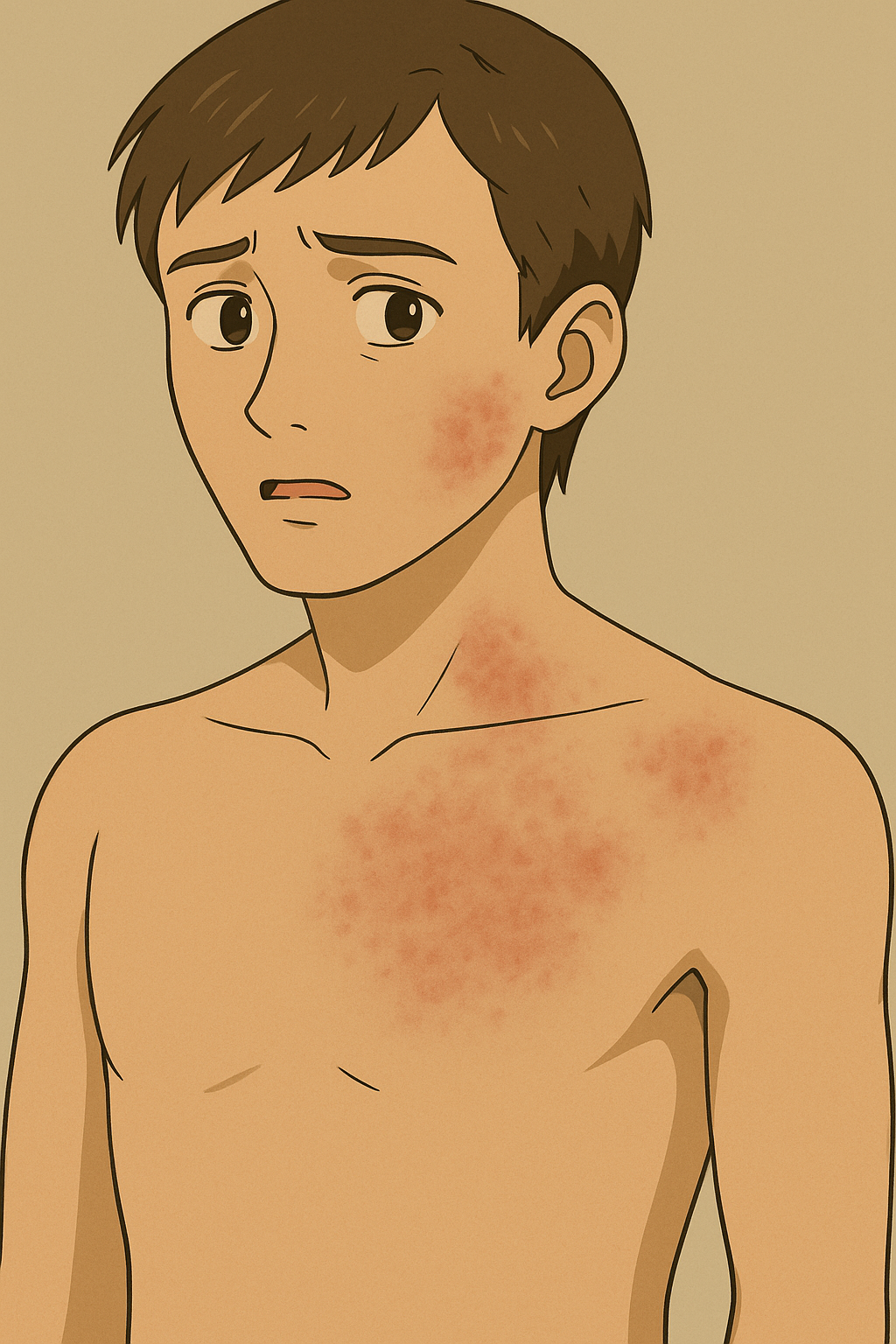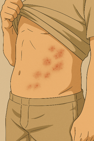 → 대상포진은 며칠 후 띠 모양 수포가 나타나며, 한쪽 방향으로만 진행되는 특징이 있음.