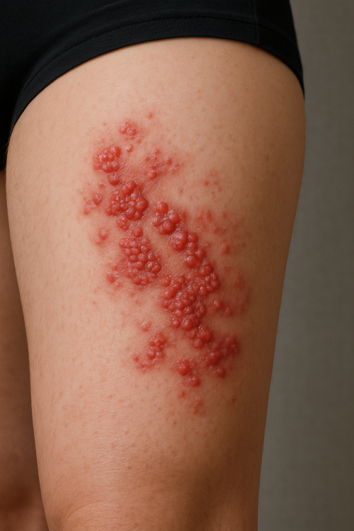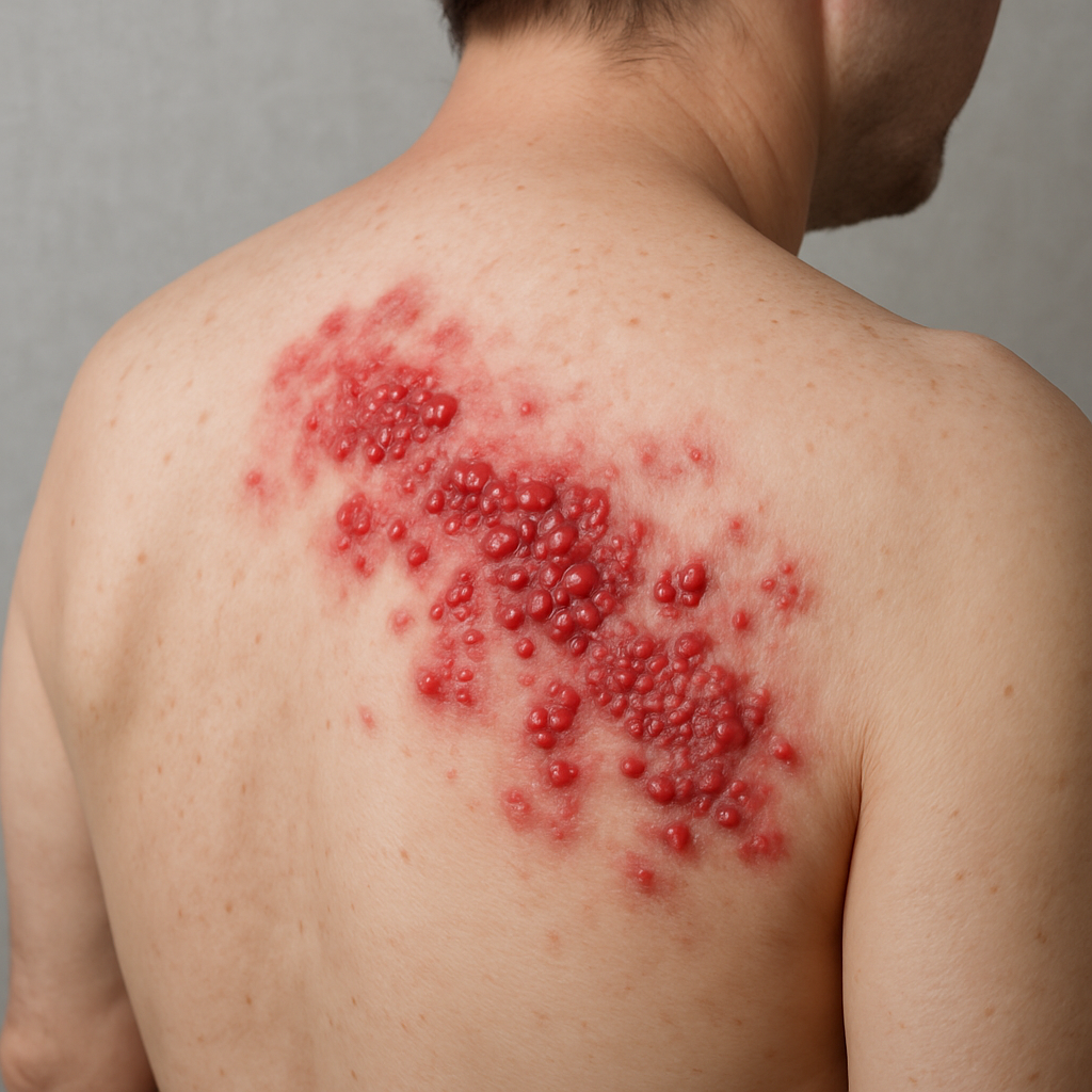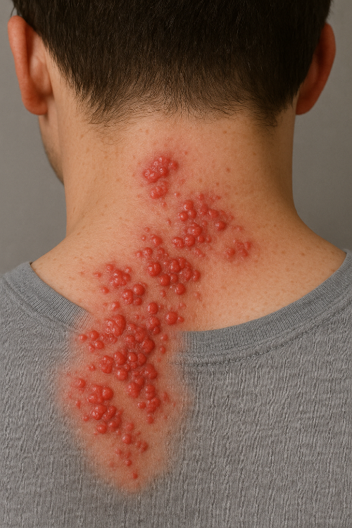 3~5일 정도 통증이 지속되면, 통증 부위에 점차 붉은 반점과 물집(수포)이 생기기 시작합니다. 이 수포는: