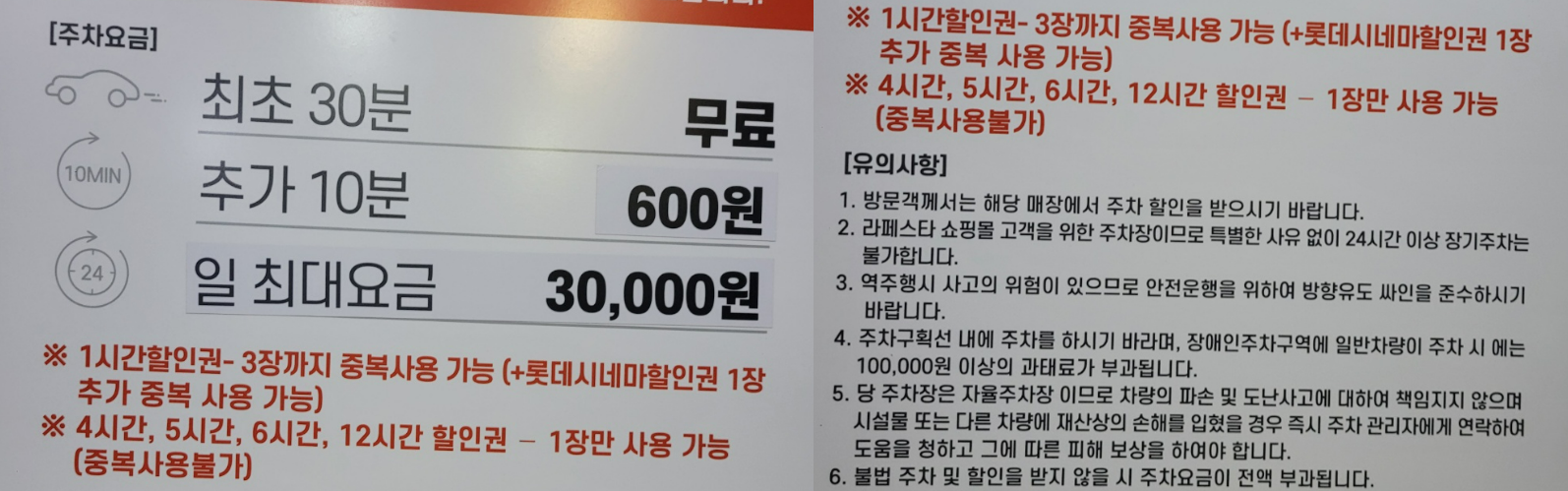 - 2시간 무료, 이후는 유료 전환 (라페스타 기준 요금)