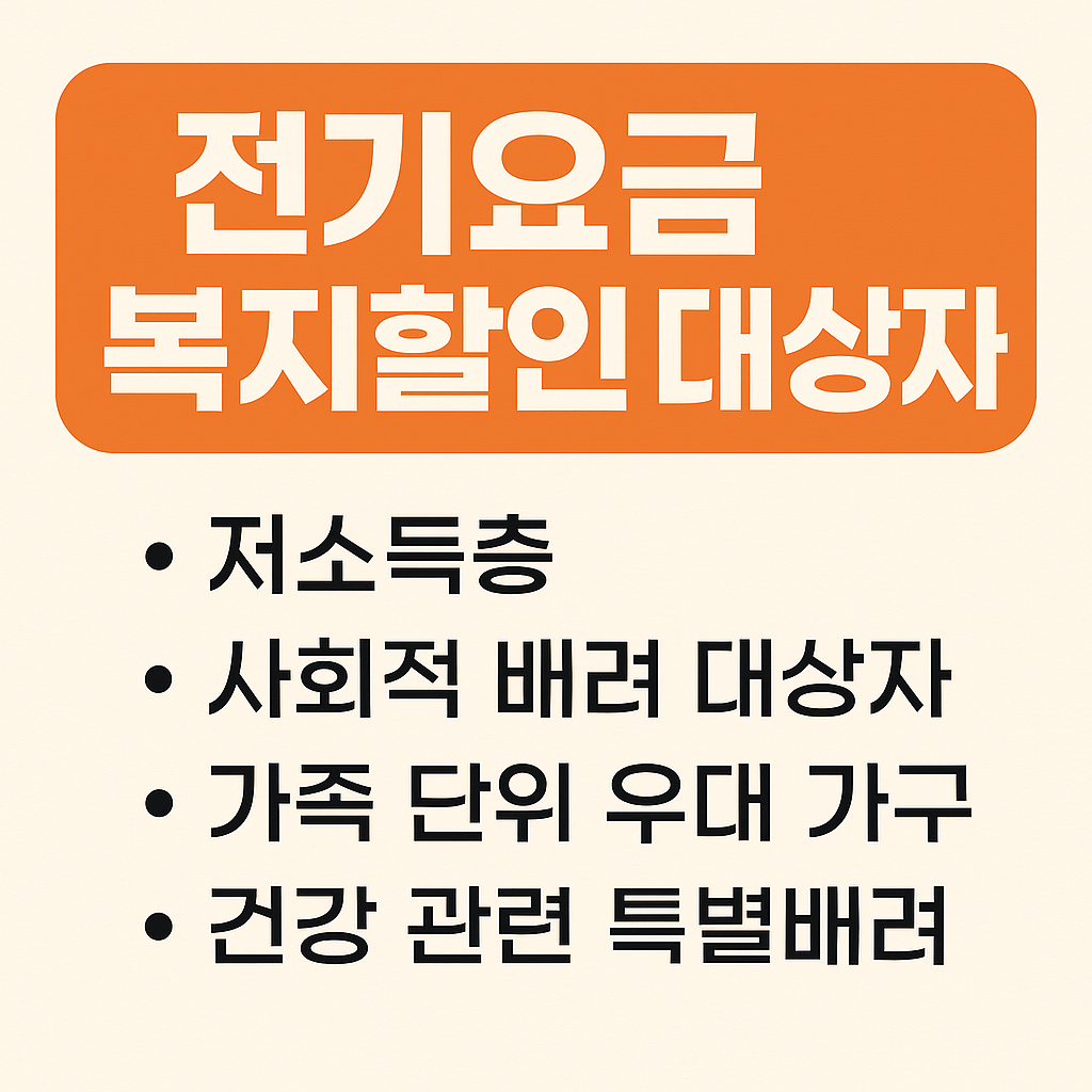 - 전기요금 복지할인 대상자 중 가장 널리 알려진 혜택군으로, 월 8,000~16,000원까지 감면 가능