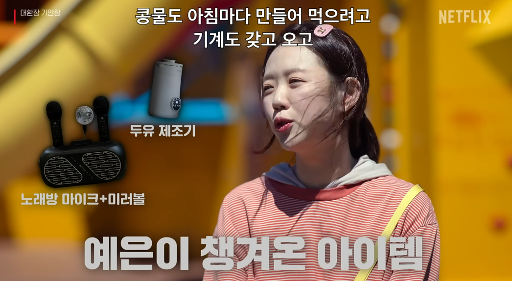 바로 지예은이 직접 가져온 **‘지예은 두유제조기’**입니다.