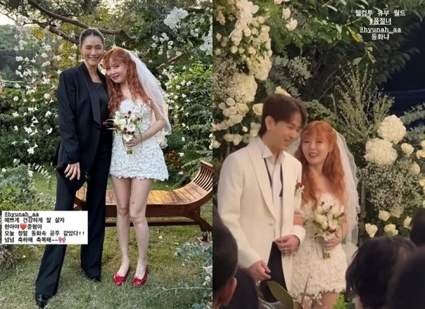 딱 현아답게 스타일리시하고 자유로운 신부의 모습이었어요.